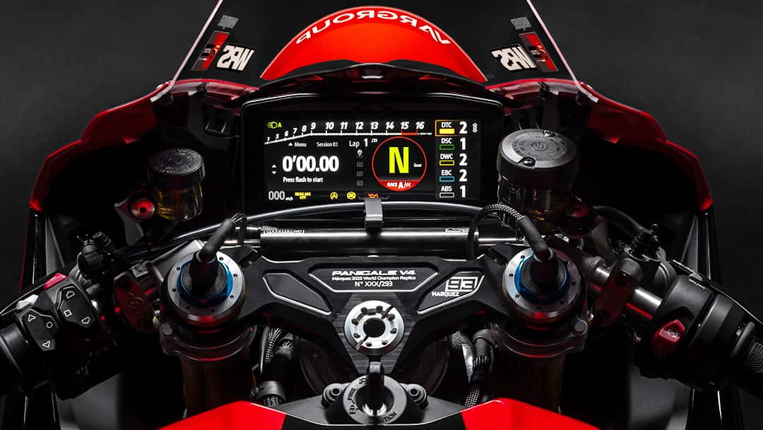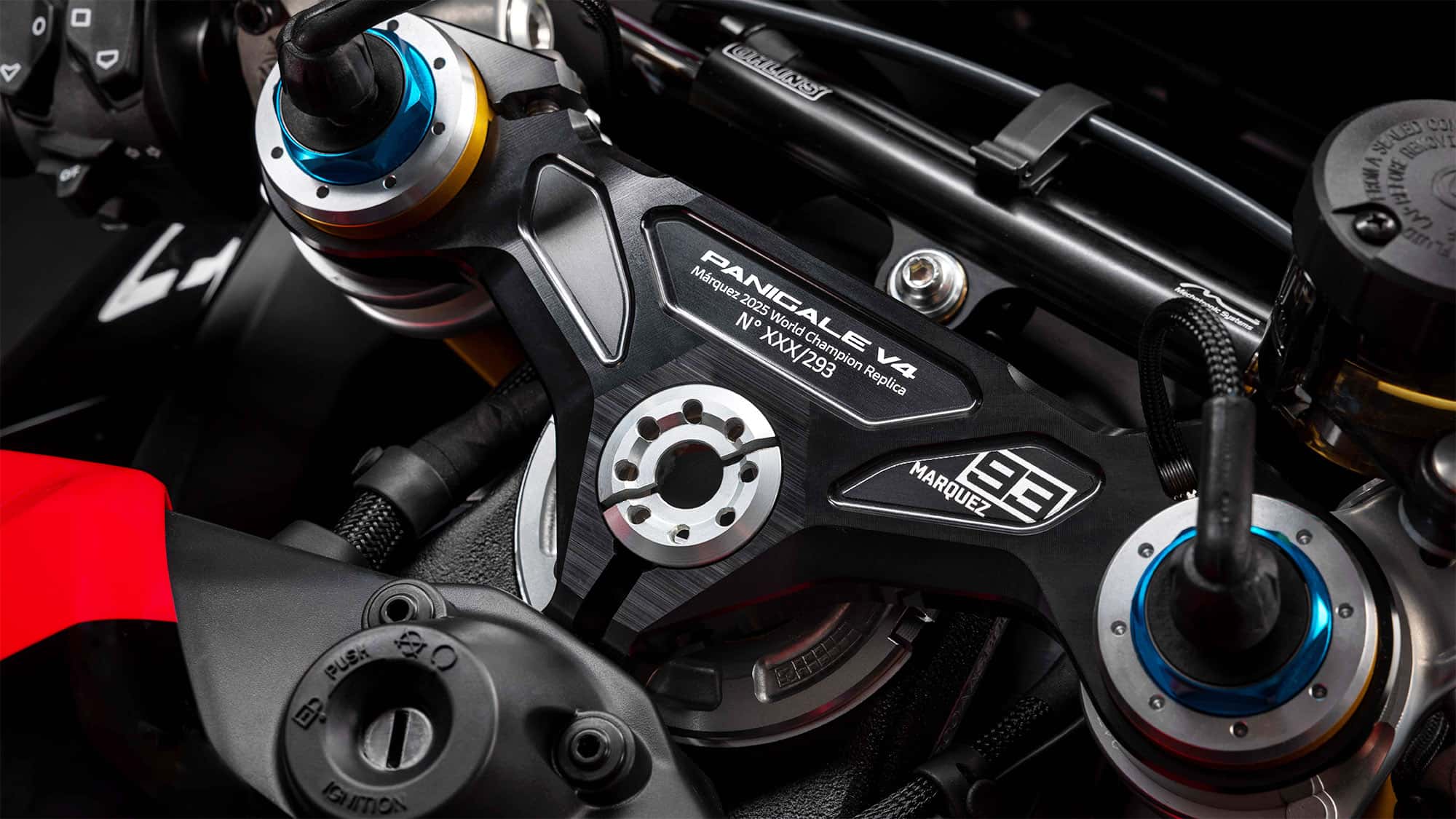 Limitiert auf 293 Exemplare weltweit ist die Ducati Panigale V4 Marquez 2025 World Champion Replica Sammlerstück und hochpotentes Superbike – mit Straßenzulassung. Extreme Eckdaten sind 218,5 PS (160,7 kW) bei 13.500/min und 186,5 Kilogramm (ohne Sprit).